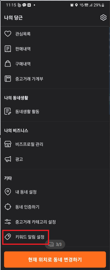 당근앱에 접속하시고, 하단 나의당근에서 '키워드 알림설정' 을 해놓으시면 됩니다.