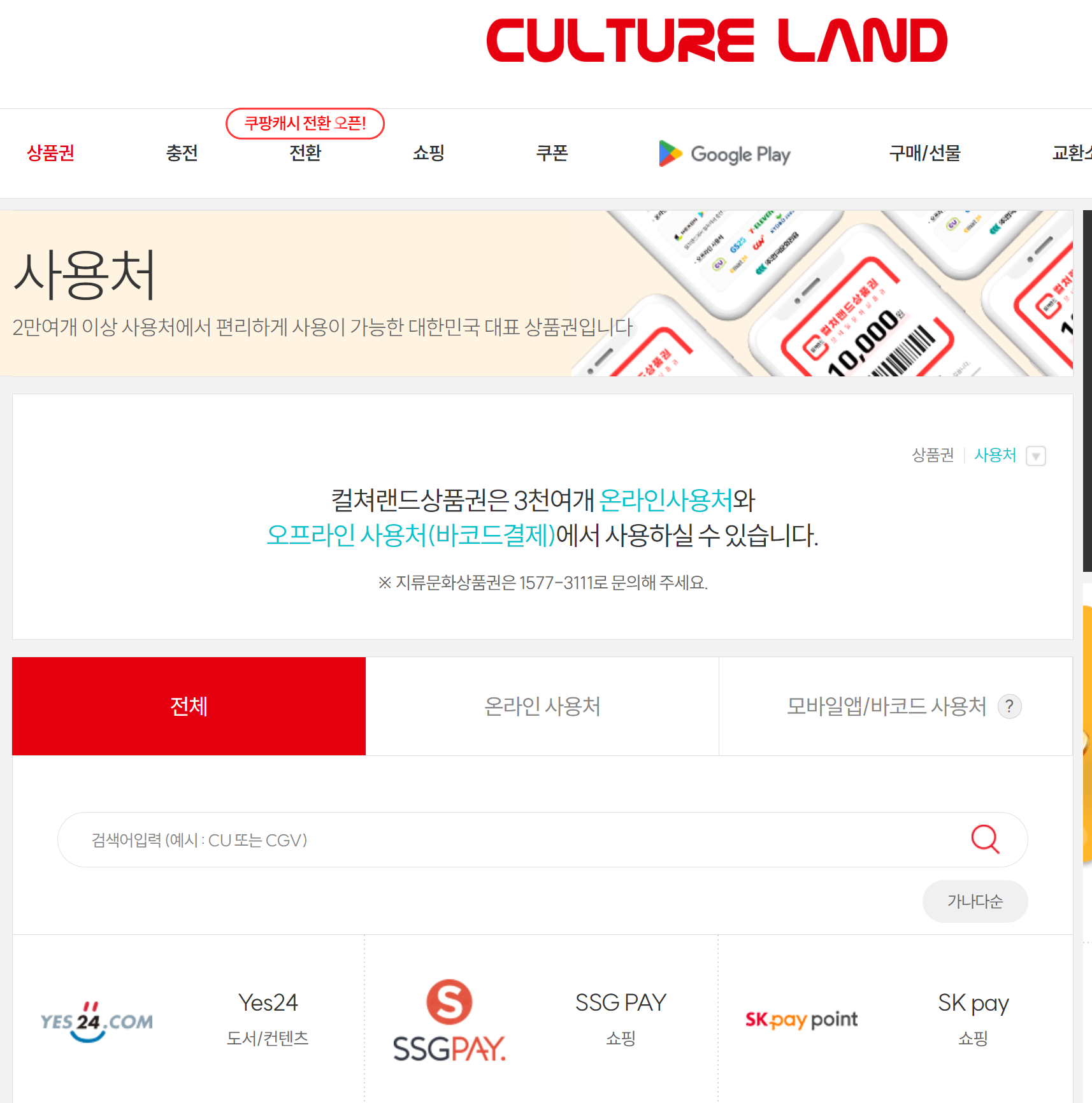 경로찾는 불편함 없이, 바로 접속하시면 3천여개의 온라인 사용처와 오프라인 사용처를 확인할 수 있습니다.