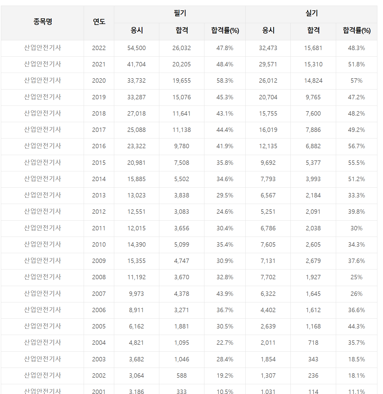 산업안전기사 합격률