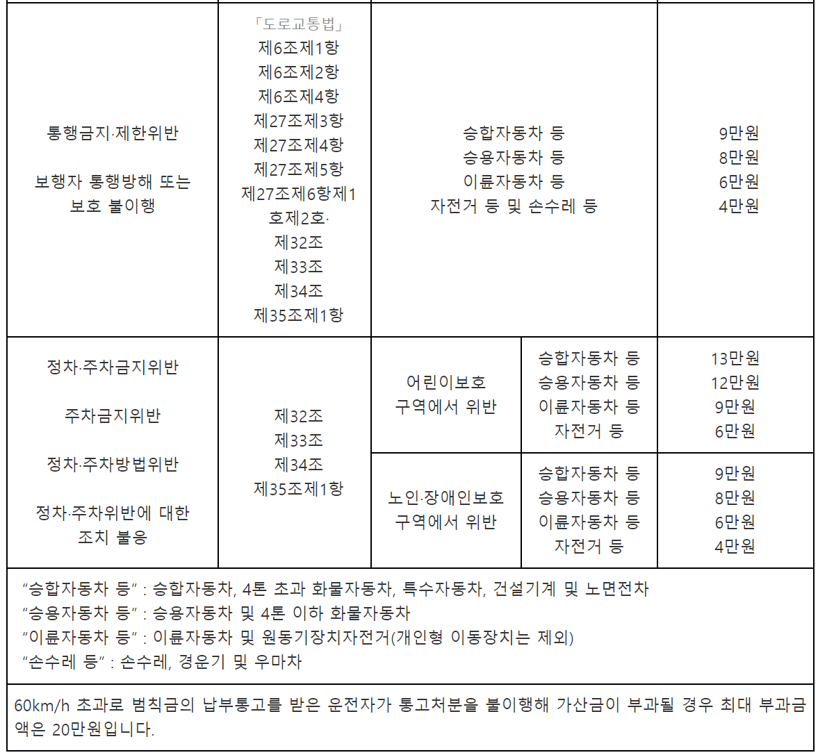 어린이보호구역 불법주정차 범칙금