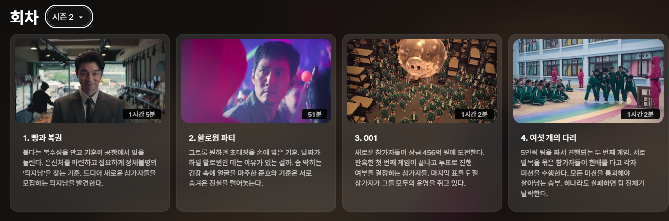 | 에피소드 수 | 시즌1: 9부작 시즌2: 7부작 |