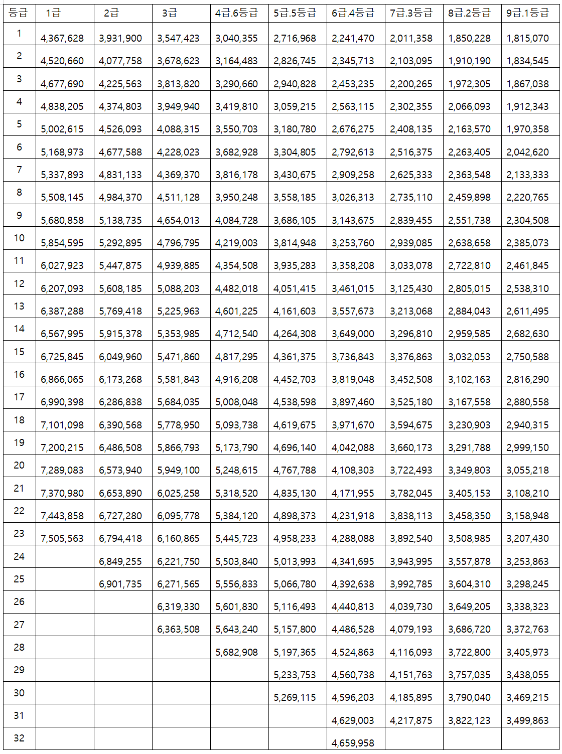 ※ 「공무원 보수규정」 별표3 ~ 별표14 기준입니다. (단위 :원)