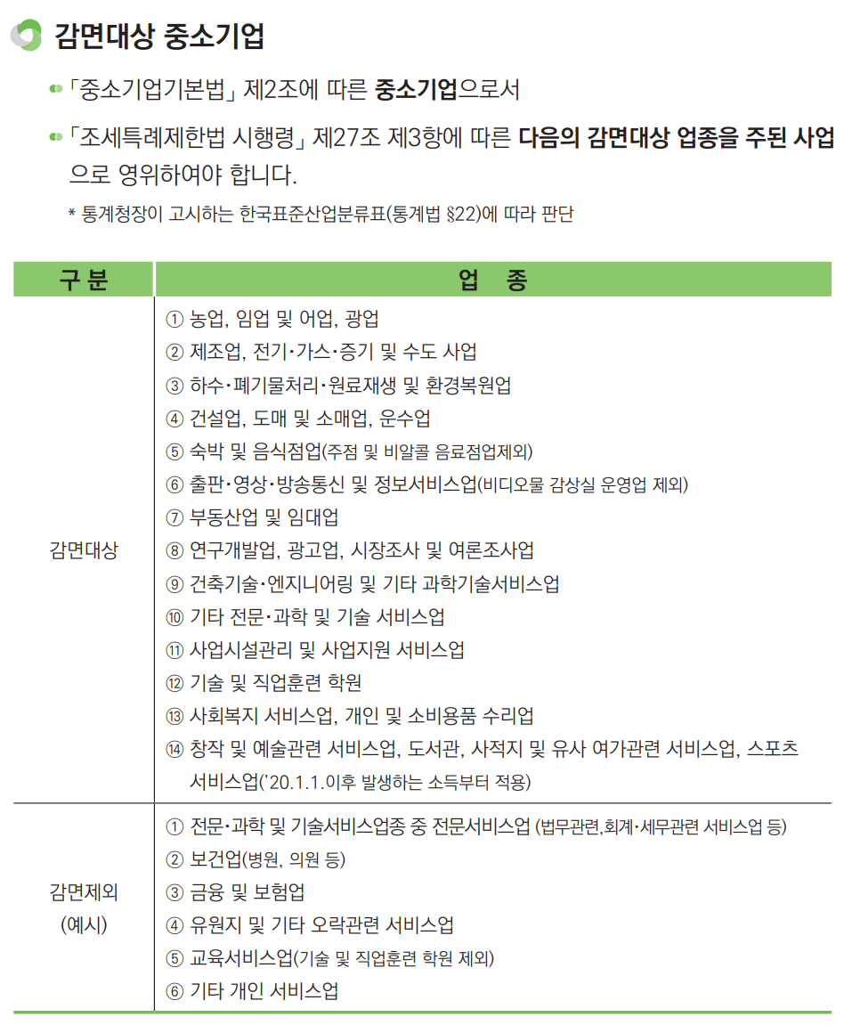 중소기업 취업자 소득세 감면 회사 조건