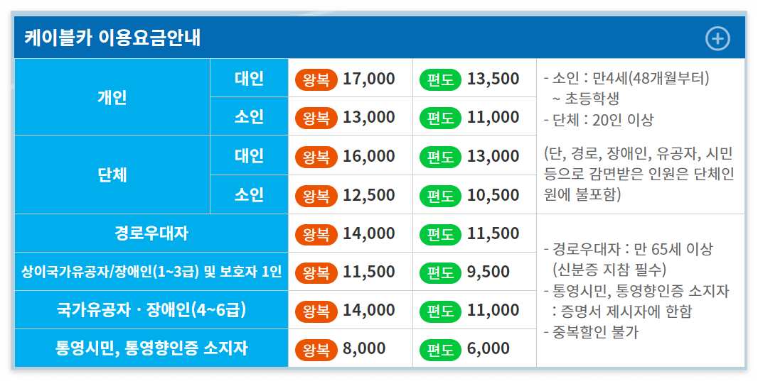 통영 케이블카 이용요금 안내