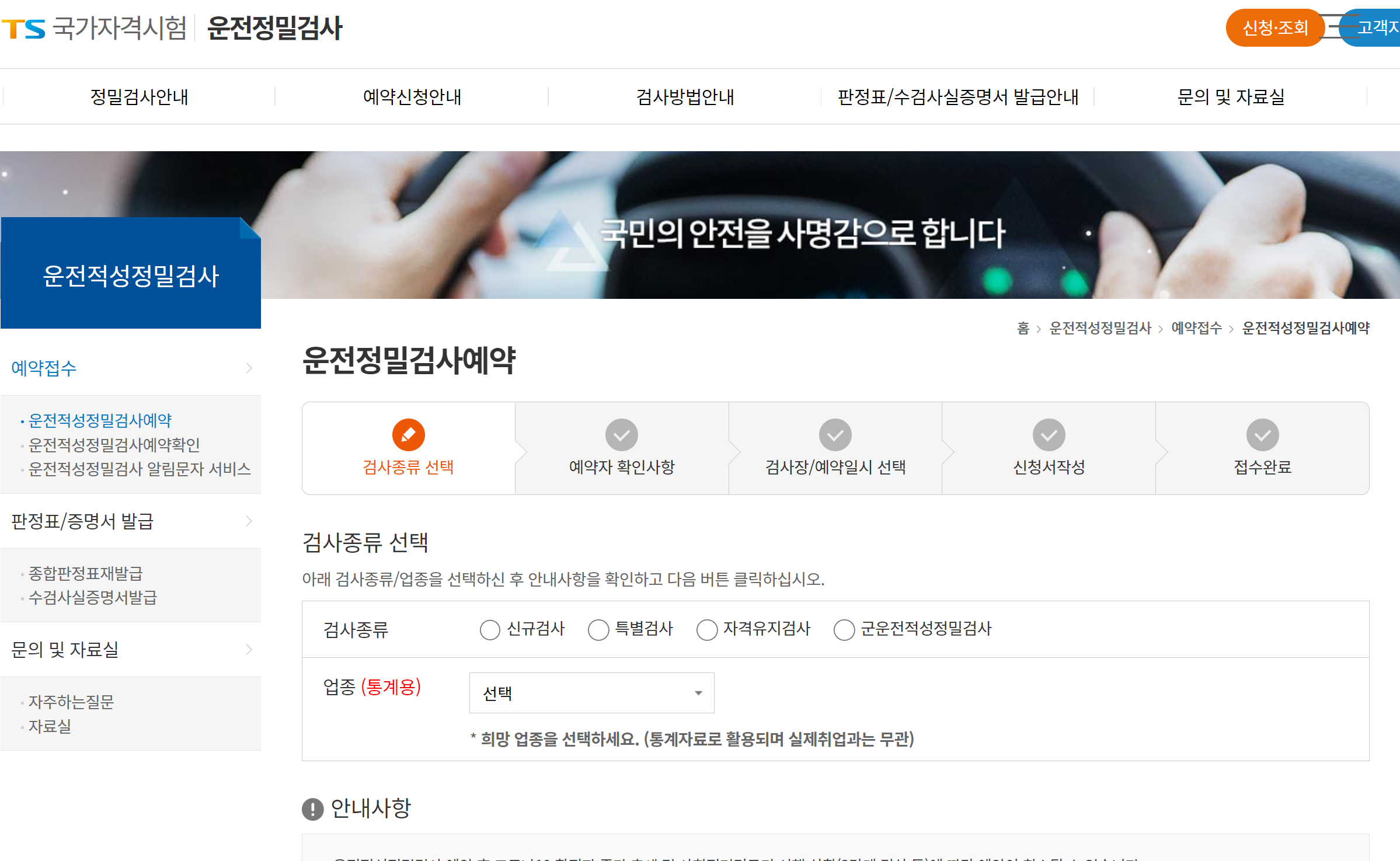 운전정밀검사예약으로 바로 가는 페이지입니다.