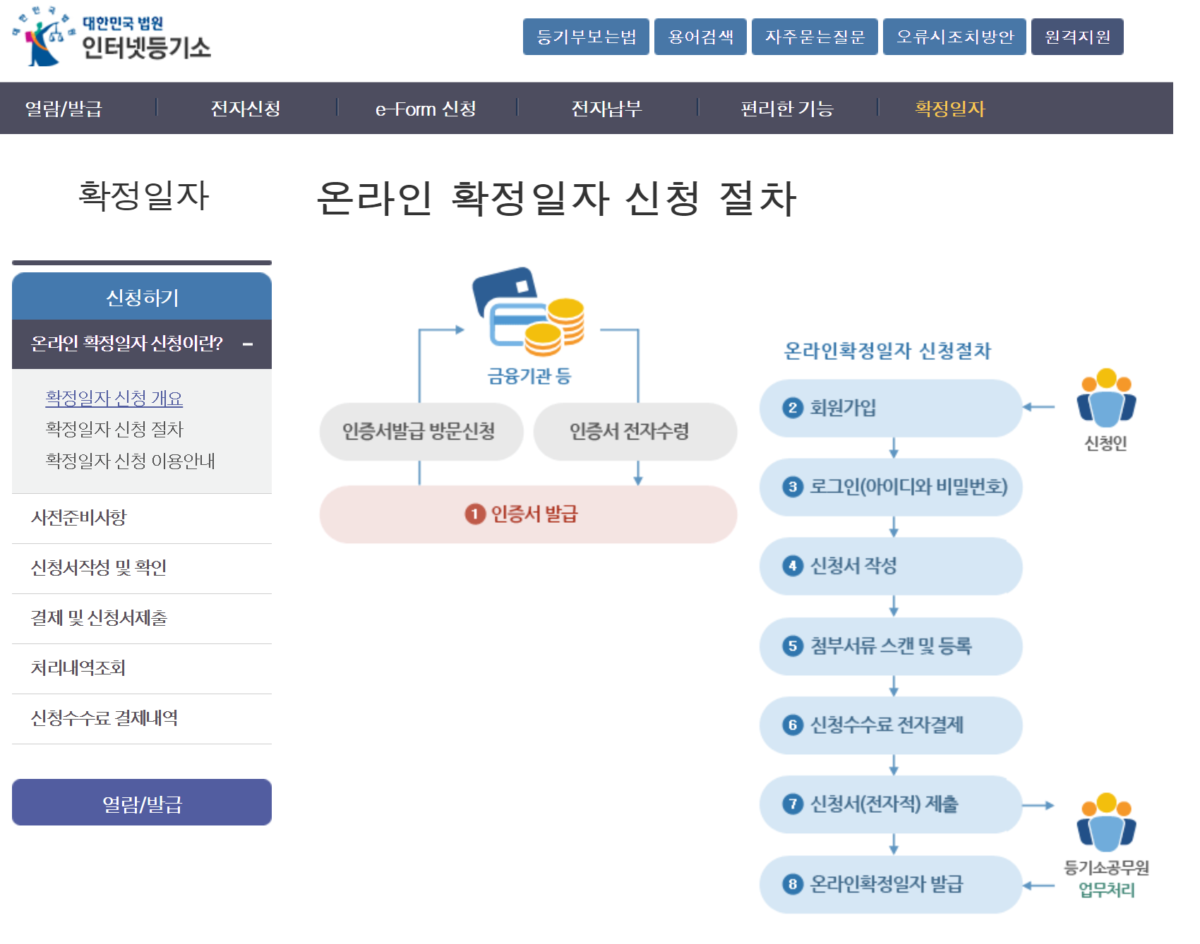 경로찾는 불편함 없이, 아래 바로가기로 들어가시면 확정일자 인터넷으로 신청하는 페이지가 열립니다.