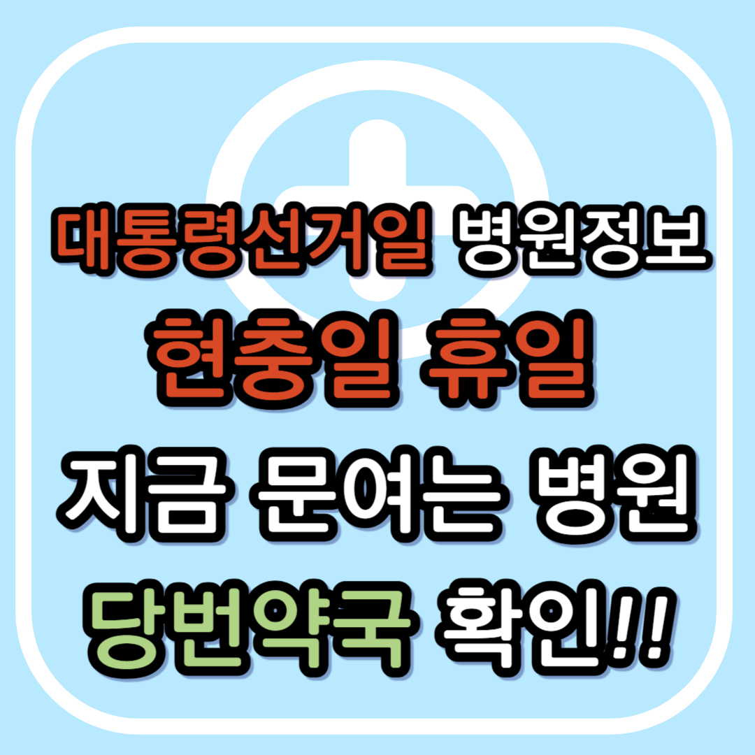 ▼시간이 없다면 ⬇️⬇️⬇️아래 '대통령선거일, 현충일, 대체공휴일 진료병원, 당직 약국' 부터 먼저 확인하세요.▼