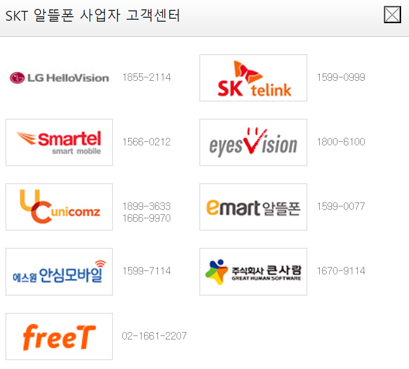 # SKT알뜰폰 고객센터